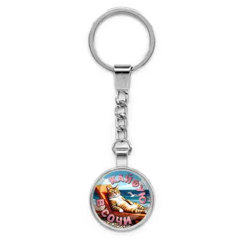 Круглый брелок, цвет серебро, с цепочкой, Кайфую в Сочи C0105022