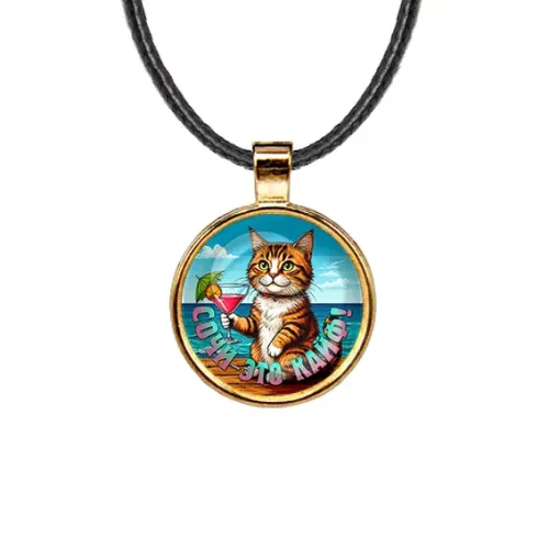 Кулон «Сочи - это кайф» — стильный аксессуар, который добавит ярких акцентов в любой образ. Изготовленный из бижутерного сплава с покрытием под золото и стеклом, он сочетает в себе элегантность и современный дизайн. Диаметр кулона составляет 28 мм, а длина шнурка — 45 см, что делает его удобным для ношения. Застёжка типа лобстер обеспечивает надежную фиксацию изделия на шее. Выпуклая стеклянная линза защищает изображение и придаёт ему особую выразительность. Этот кулон станет отличным подарком или оригинальным дополнением к личной коллекции украшений.