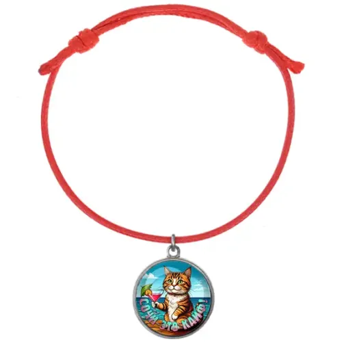 Браслет из красного шнура — это стильный аксессуар с уникальным культурным смыслом. Он символизирует удачу и защищает от негативной энергии. Изделие выполнено из прочного красного шнура и оснащено подвеской из металлического основания с полиграфической вставкой под выпуклым стеклом, что придаёт ему особую привлекательность.