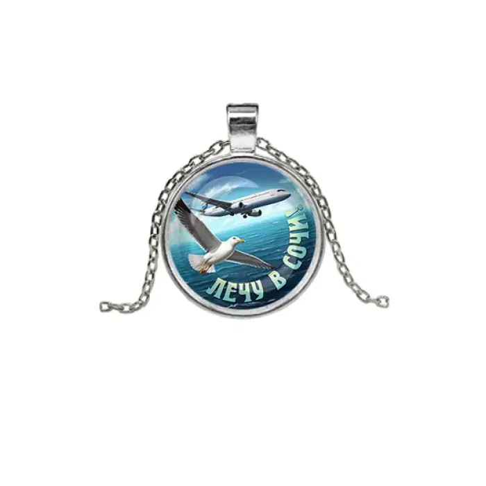 Кулон «Лечу в Сочи» из бижутерного сплава с цепочкой.