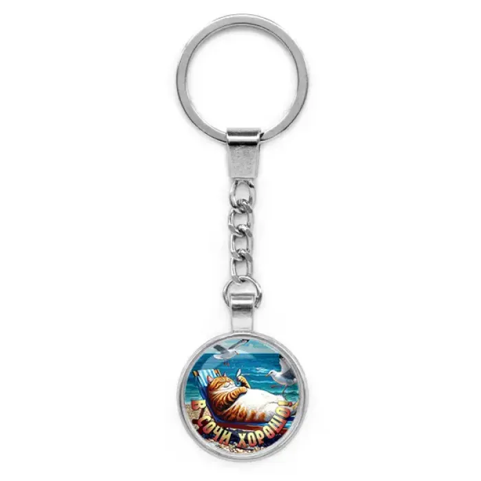Круглый брелок, цвет серебро, с цепочкой, В Сочи хорошо C0108022