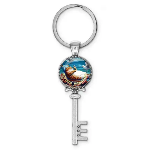 Брелок-сувенир в форме ключа из бижутерного сплава с изображением и стеклянной линзой.