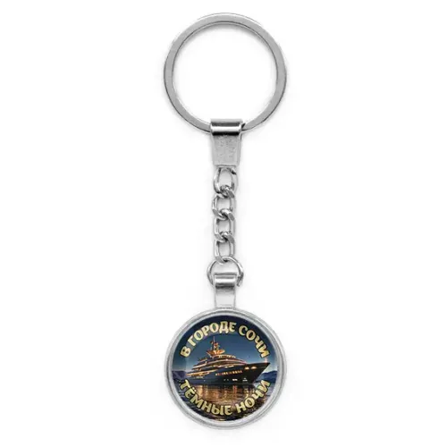 Круглый брелок, цвет серебро, с цепочкой, В городе Сочи C0109022