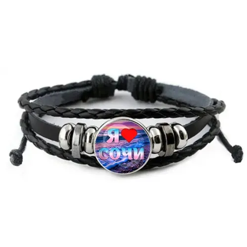 Кожаный браслет с сувенирной вставкой «Я люблю Сочи».