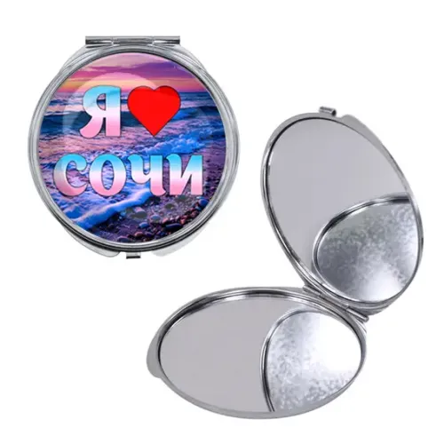 Косметическое складное зеркало круглой формы с полноцветным принтом «Я люблю Сочи».