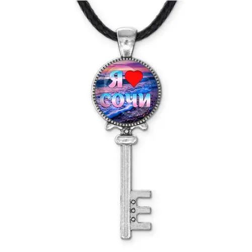 Сувенирный кулон в виде ключа с символикой Сочи, выполненный из бижутерного сплава.