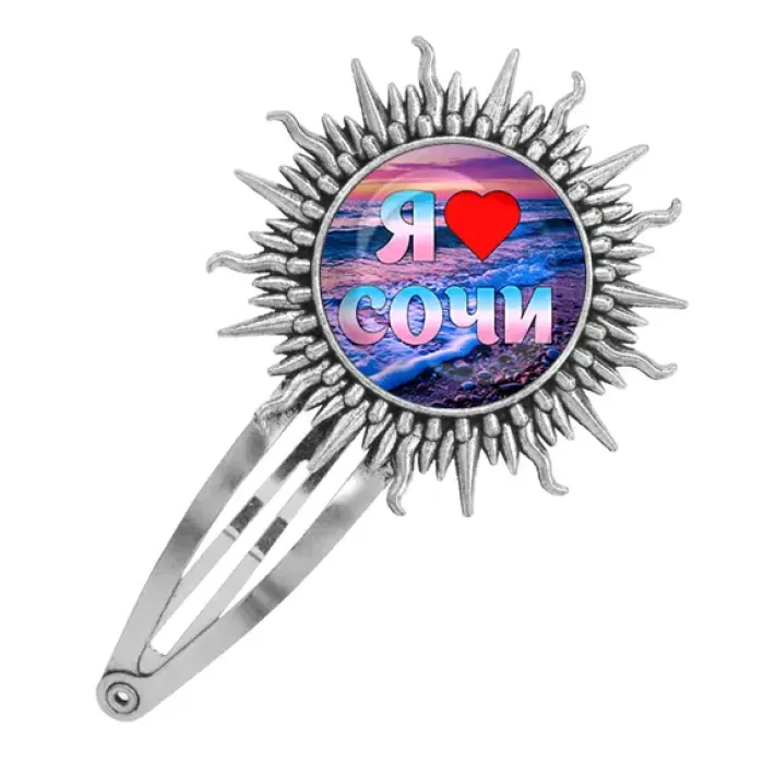 Заколка металлическая, цвет серебро, Я люблю Сочи C0111045