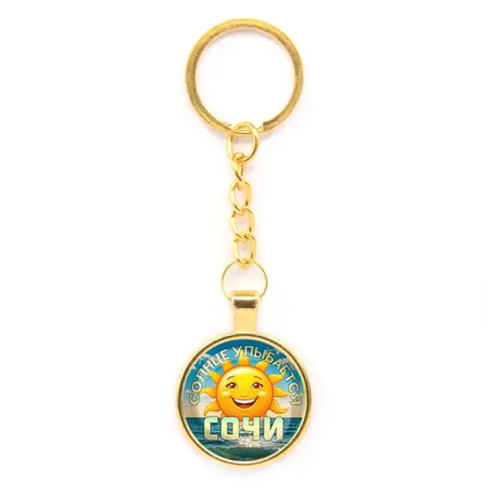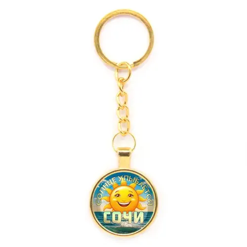 Круглый брелок, цвет золото, с цепочкой, Солнце улыбается C0113020