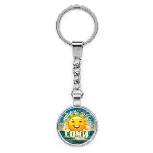Круглый брелок, цвет серебро, с цепочкой, Солнце улыбается C0113022