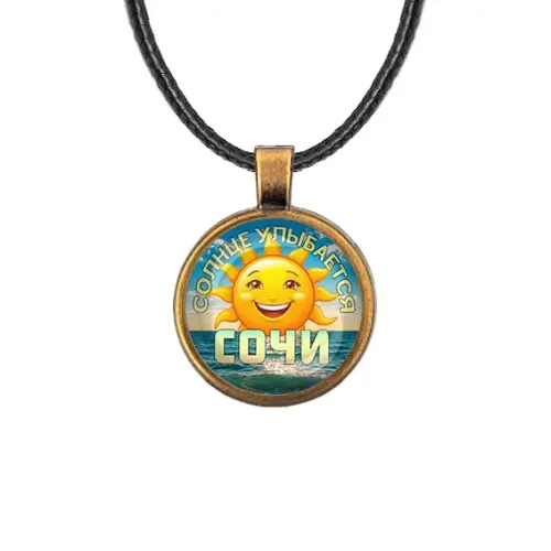 Кулон "Солнце улыбается" — это изысканное украшение, которое символизирует радость и свет. Он выполнен из бижутерного сплава с покрытием под бронзу и стекла, что придаёт ему уникальный блеск и элегантность.