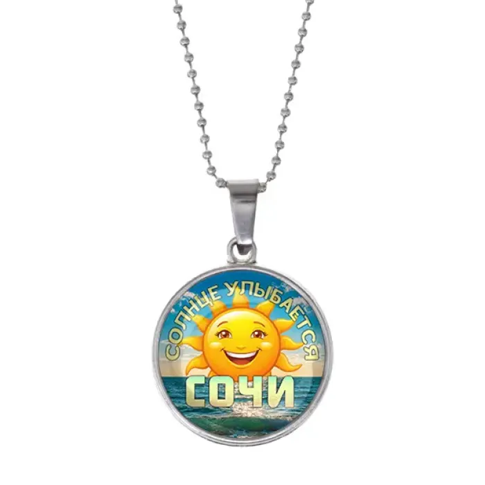 Кулон «Солнце улыбается» — украшение из бижутерного сплава с серебристым покрытием и защитным стеклянным элементом.