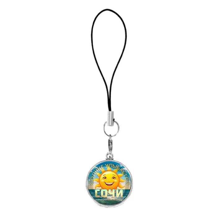 Подвеска для телефона, цвет серебро, со шнурком, Солнце улыбается C0113060