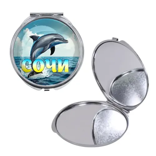 Круглое складное зеркало — это стильный и практичный аксессуар, который станет незаменимым спутником в повседневной жизни. С уникальным принтом дельфина, это косметическое зеркало не только функционально, но и привносит нотку оригинальности в любой образ.