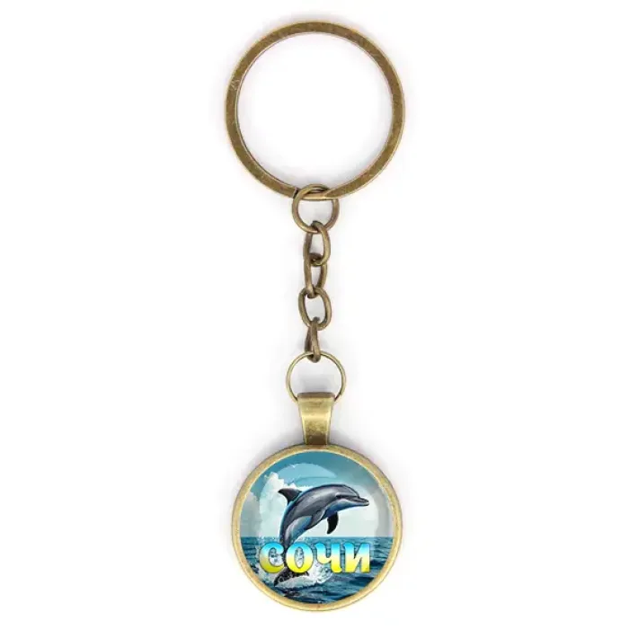 Круглый брелок, цвет бронза, с цепочкой, Дельфин C0115018