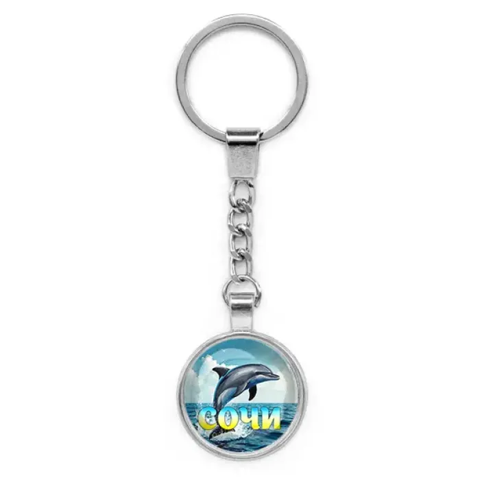 Круглый брелок, цвет серебро, с цепочкой, Дельфин C0115022