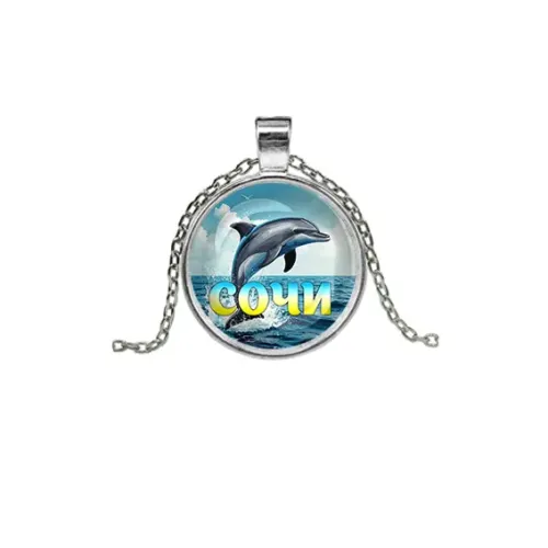 Кулон с цепочкой, модель «Дельфин». Материал — бижутерный сплав с покрытием под серебро и стекло.