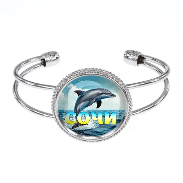 Браслет из бижутерного сплава с изображением дельфина под выпуклой стеклянной линзой — это стильный аксессуар, который добавит изюминку в любой образ. Его диаметр составляет 25 мм, а безразмерная форма позволяет носить его с комфортом. Изготовленный из бижутерного сплава с покрытием под серебро и стекла, браслет сочетает в себе элегантность и прочность. Такой аксессуар традиционно ценится за свою универсальность и возможность стать прекрасным подарком для близких.