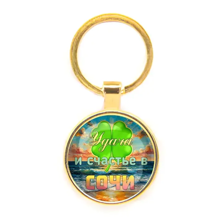Круглый брелок цвета золота с символом удачи станет не только стильным аксессуаром, но и отличным подарком. Изготовленный из бижутерного сплава с покрытием под золото и стекла, он сочетает в себе элегантность и прочность. Размер изделия с кольцом составляет 28х60 мм, что делает его удобным для ношения на ключах или сумке. Изображение защищено выпуклой стеклянной линзой, придающей дополнительный шарм и защиту от повреждений. Брелок традиционно ассоциируется с привлечением удачи и позитивной энергии.