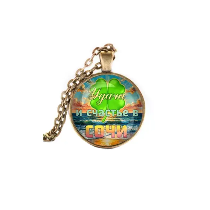 Кулон с цепочкой. Материал: бижутерный сплав с бронзовым покрытием и стеклянной линзой.