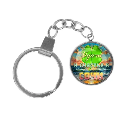 Брелок для ключей из нержавеющей стали с декоративным кулоном под стеклянной линзой.