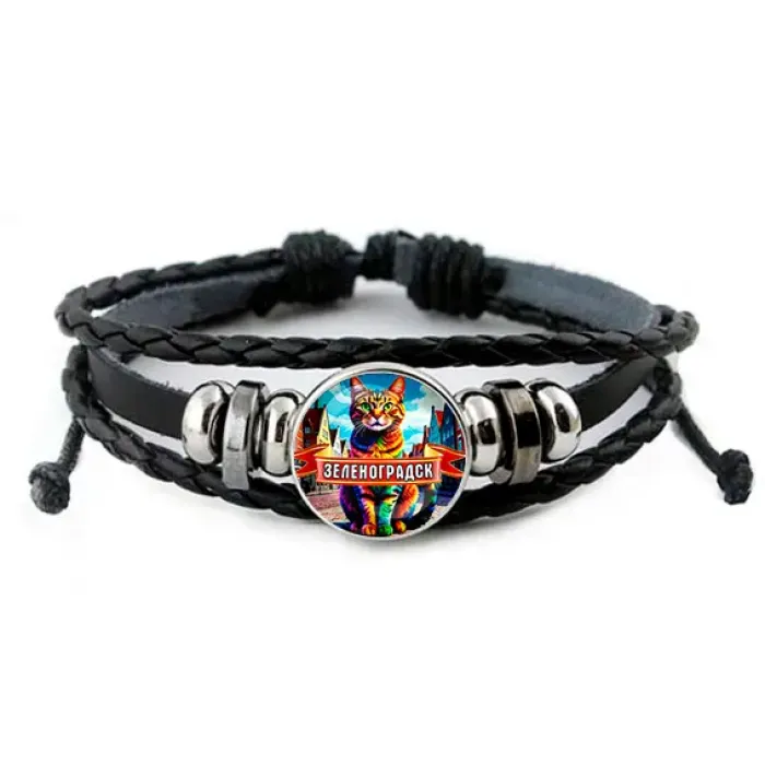 Сувенирный браслет из искусственной кожи с декоративным элементом под стеклянной линзой.