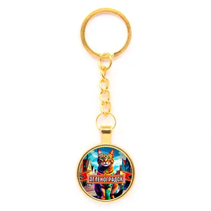 Круглый брелок, цвет золото, с цепочкой, Зеленоградск C0201020