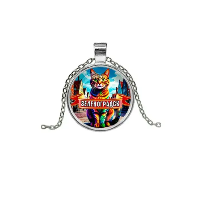 Кулон из бижутерного сплава с покрытием под серебро и стеклянной линзой, входящий в коллекцию «Зеленоградск».