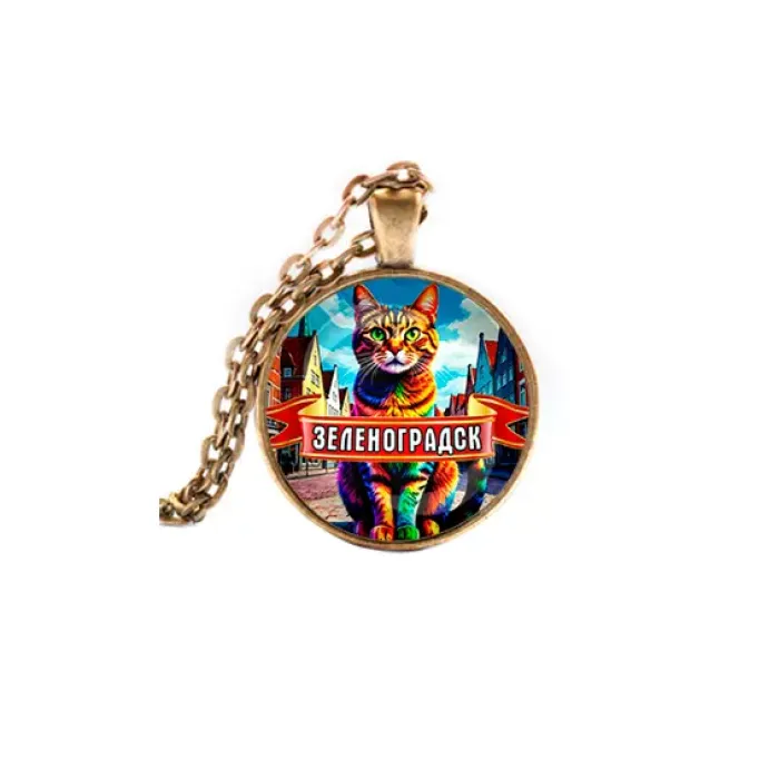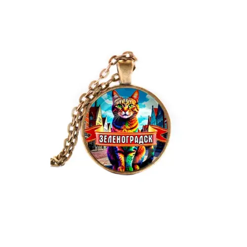 Сувенирный кулон с цепочкой, выполненный в цвете бронза, с изображением города Зеленоградск.
