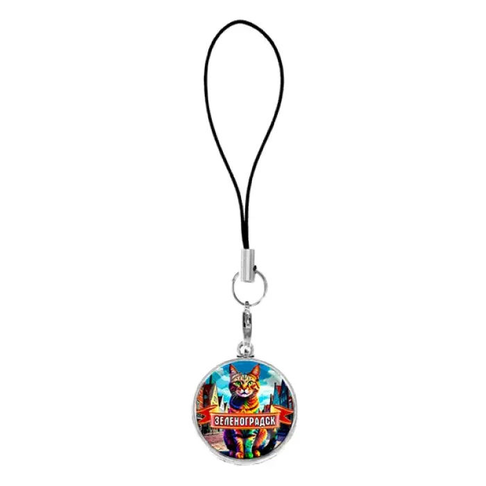 Подвеска-брелок для телефона из бижутерного сплава под серебро с изображением Зеленоградска.