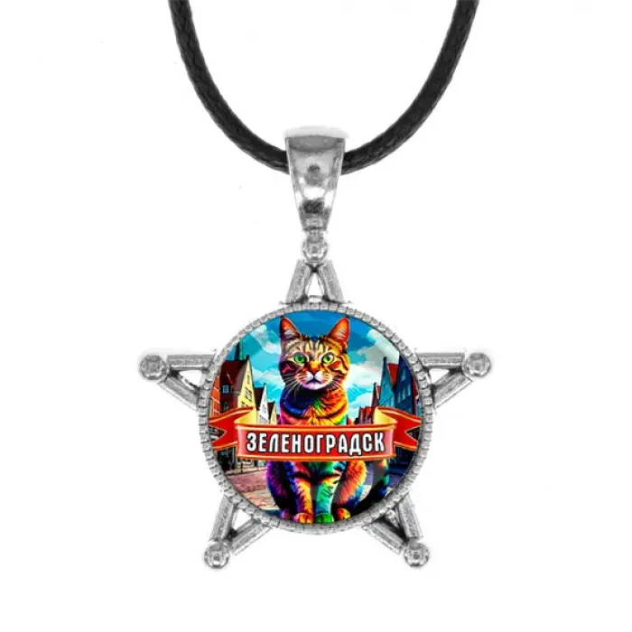Сувенирный кулон в виде звезды из бижутерного сплава под серебро с защитным стеклом.
