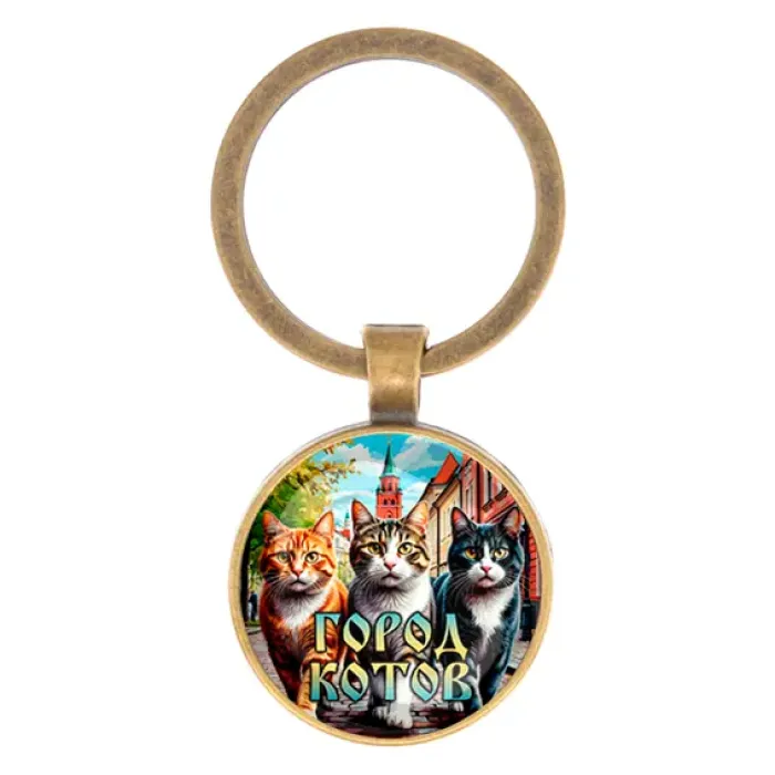 Круглый брелок, цвет бронза, Город котов C0202017