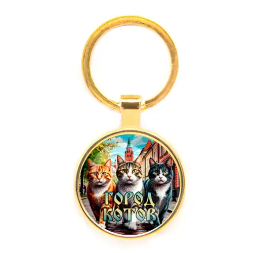 Круглый брелок, цвет золото, Город котов C0202019