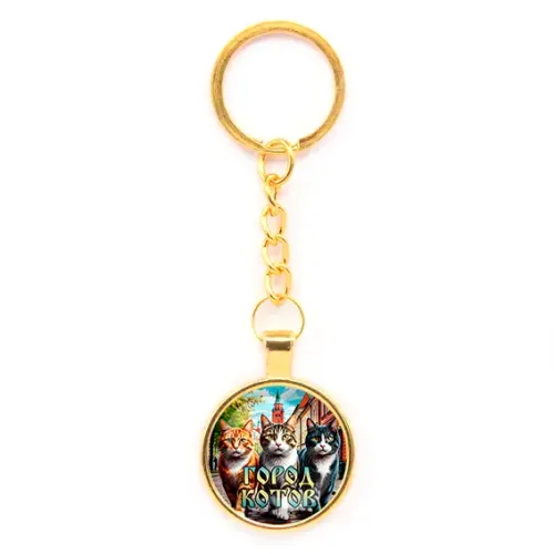 Круглый брелок, цвет золото, с цепочкой, Город котов C0202020
