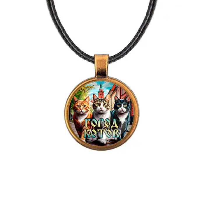 Кулон, цвет бронза, со шнурком, Город котов C0202029