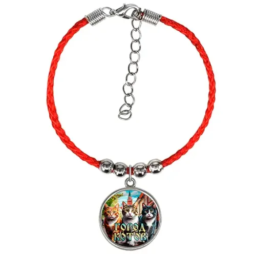 Этот браслет из яркого и прочного шнурка станет прекрасным украшением для любого образа. Символика города котов добавляет уникальности, а изображение под выпуклым стеклом защищает его от повреждений. Максимальный диаметр составляет 7,5 см, что позволяет регулировать размер под индивидуальные параметры запястья. Изготовлен из качественного шнура и бижутерного сплава с покрытием под серебро, что обеспечивает долговечность и стильный внешний вид. Диаметр изображения — 20 мм, что делает его заметным акцентом на руке.