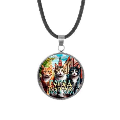 Кулон, нержавеющая сталь, со шнурком, Город котов C0202062