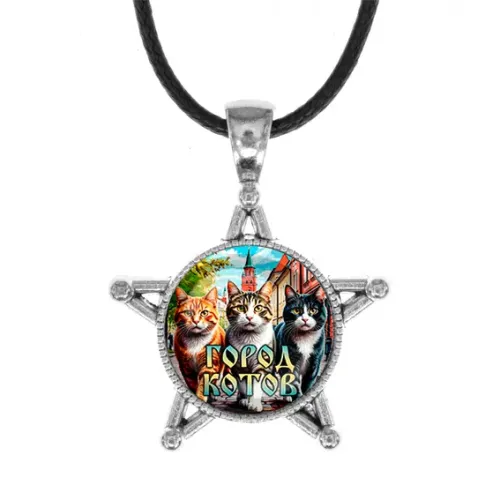 Кулон из коллекции "Город котов". Изготовлен из бижутерного сплава под серебро и стекла.