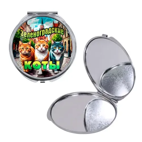 Круглое складное зеркало, цвет серебро, Зеленоградские коты C0203016