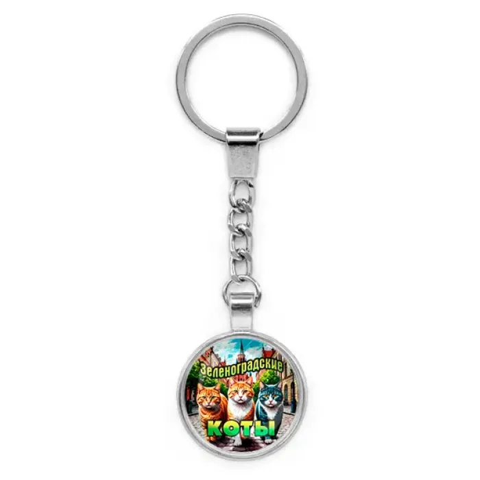 Круглый брелок, цвет серебро, с цепочкой, Зеленоградские коты C0203022