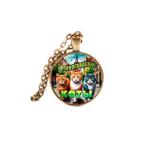 Кулон «Зеленоградские коты» из бижутерного сплава с бронзовым покрытием и стеклянным элементом.