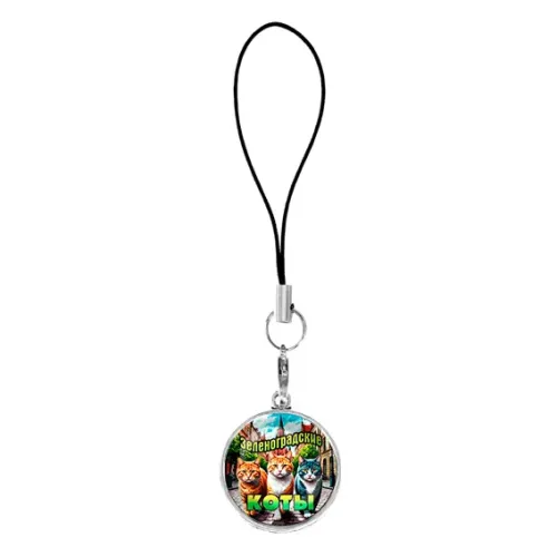 Подвеска для телефона, цвет серебро, со шнурком, Зеленоградские коты C0203060
