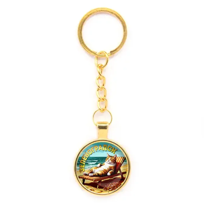 Круглый брелок, цвет золото, с цепочкой, Зеленоградск C0204020