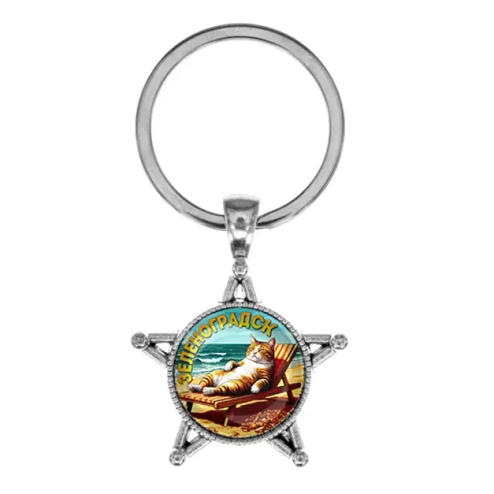 Брелок-сувенир в форме звезды из бижутерного сплава и стекла с изображением Зеленоградска.