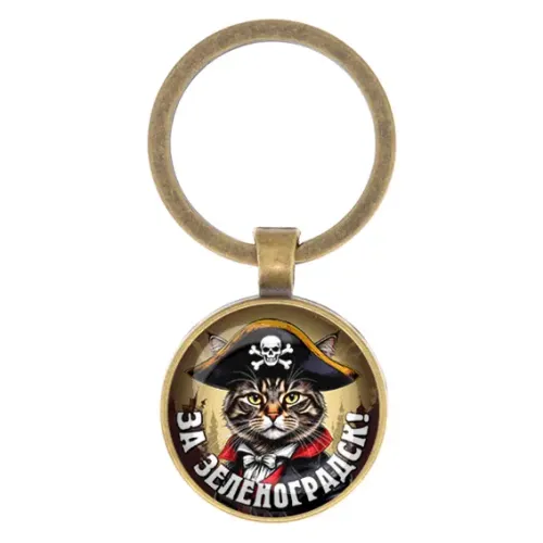 Круглый брелок с изображением города Зеленоградск. Изготовлен из бижутерного сплава и стекла.