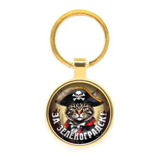 Круглый брелок-сувенир из бижутерного сплава с золотым покрытием и защитным стеклом, с изображением «За Зеленоградск».