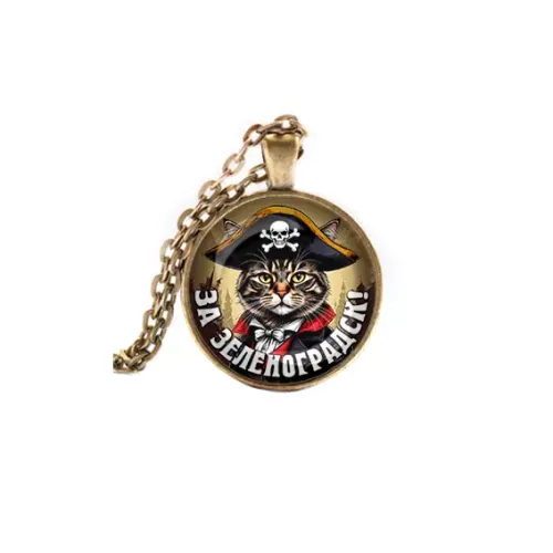 Кулон «За Зеленоградск» — сувенирное украшение из бижутерного сплава с покрытием под бронзу и стеклянной линзой.