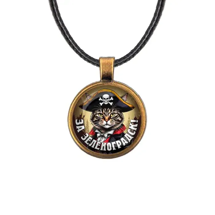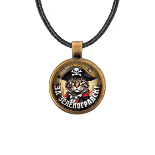 Сувенирный кулон «За Зеленоградск» из бижутерного сплава с бронзовым покрытием и стеклянным элементом.
