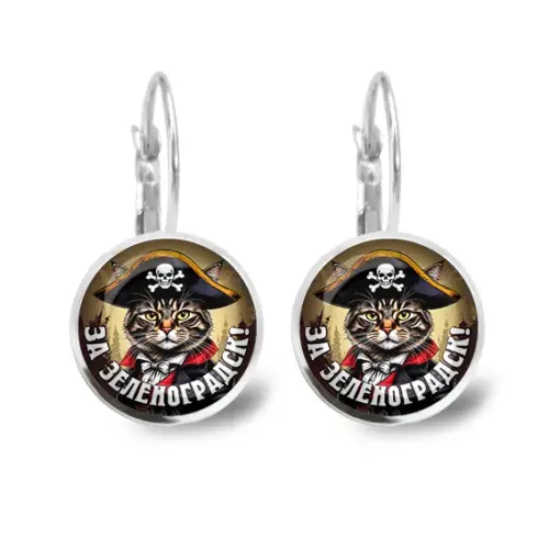 Серьги сувенирные из бижутерного сплава с изображениями под выпуклыми стеклянными линзами.