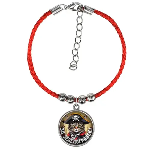Браслет из шнура с декоративным элементом на металлической основе под защитным стеклом.