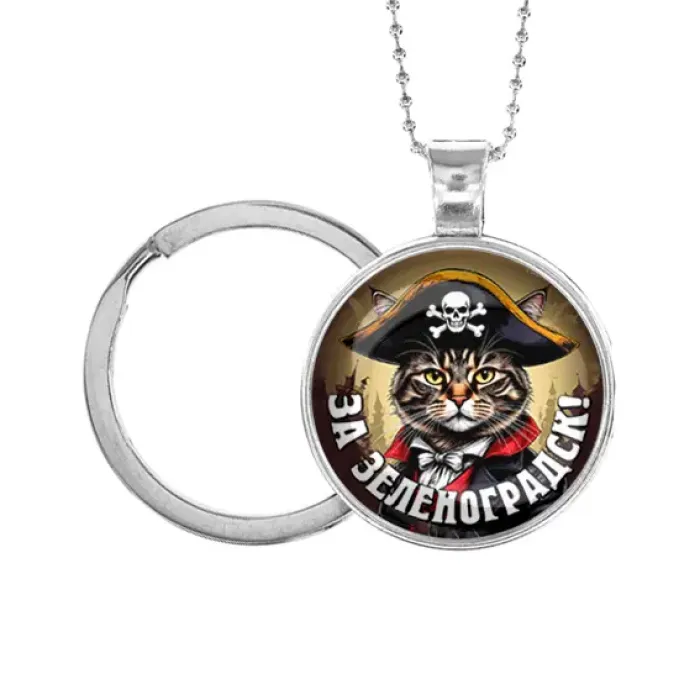 Сувенирный кулон-брелок «За Зеленоградск» из бижутерного сплава с покрытием под серебро и стеклянной линзой.
